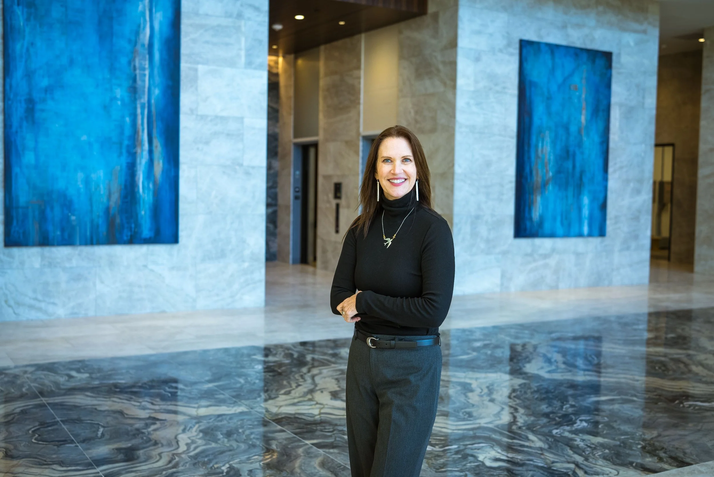 Debra Ferrari installs two commissioned original contemporary canvas paintings for the new Weirs Plaza Building located in the Knox Henderson area in Dallas. Each on measures 78” x 120” | October 2021